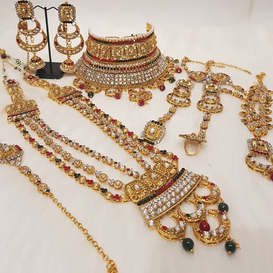 Bridal necklace set comes with all accessories, bindi, earings, nose ring, hand peices, two necklaces