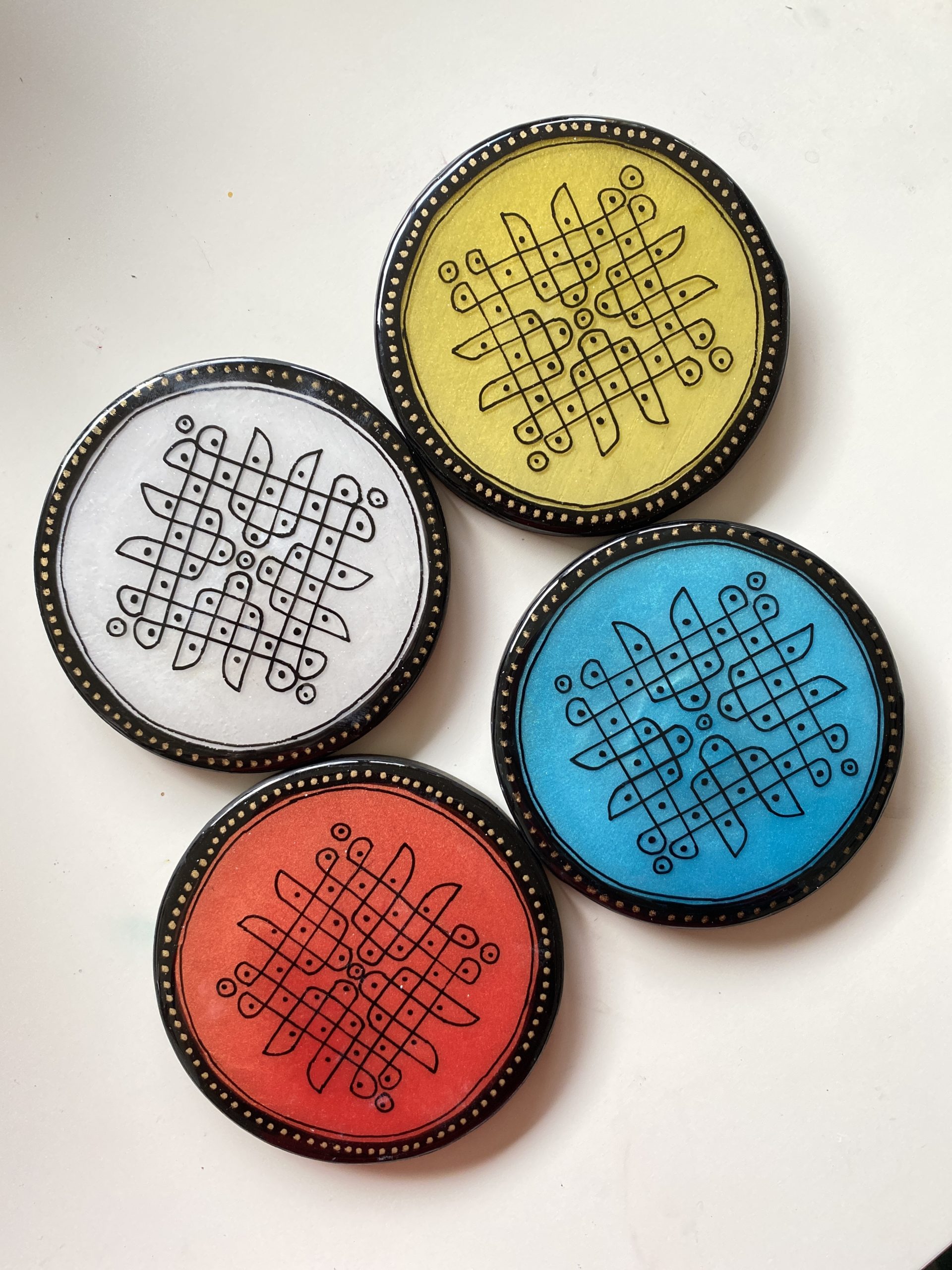 Traditional art kolam coasters – set of 2